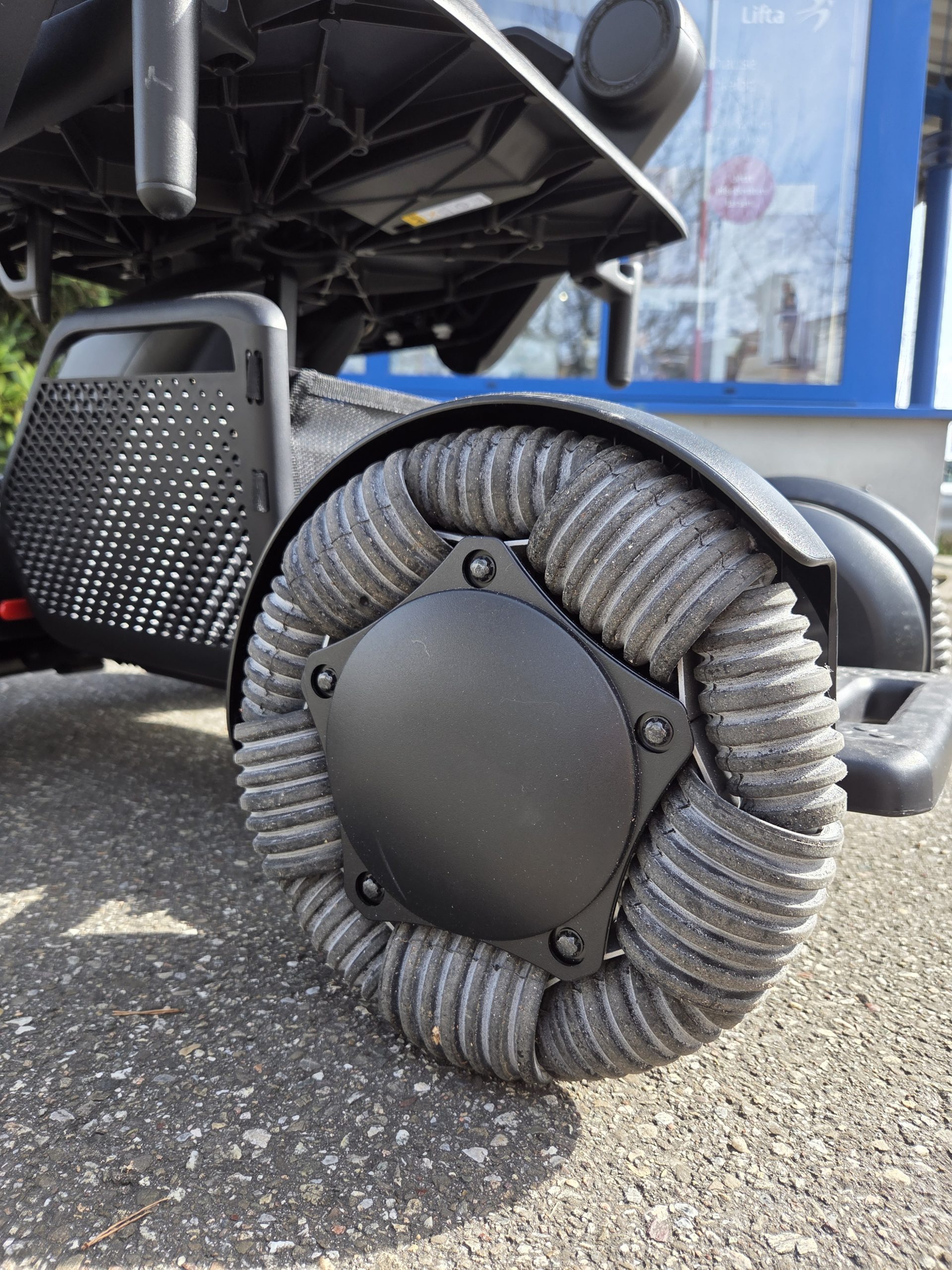 Der tragbare elektrische Rollstuhl Modell C2 von Whill zeichnet sich durch patentierte Radtechnologie und praktisches Handling aus.